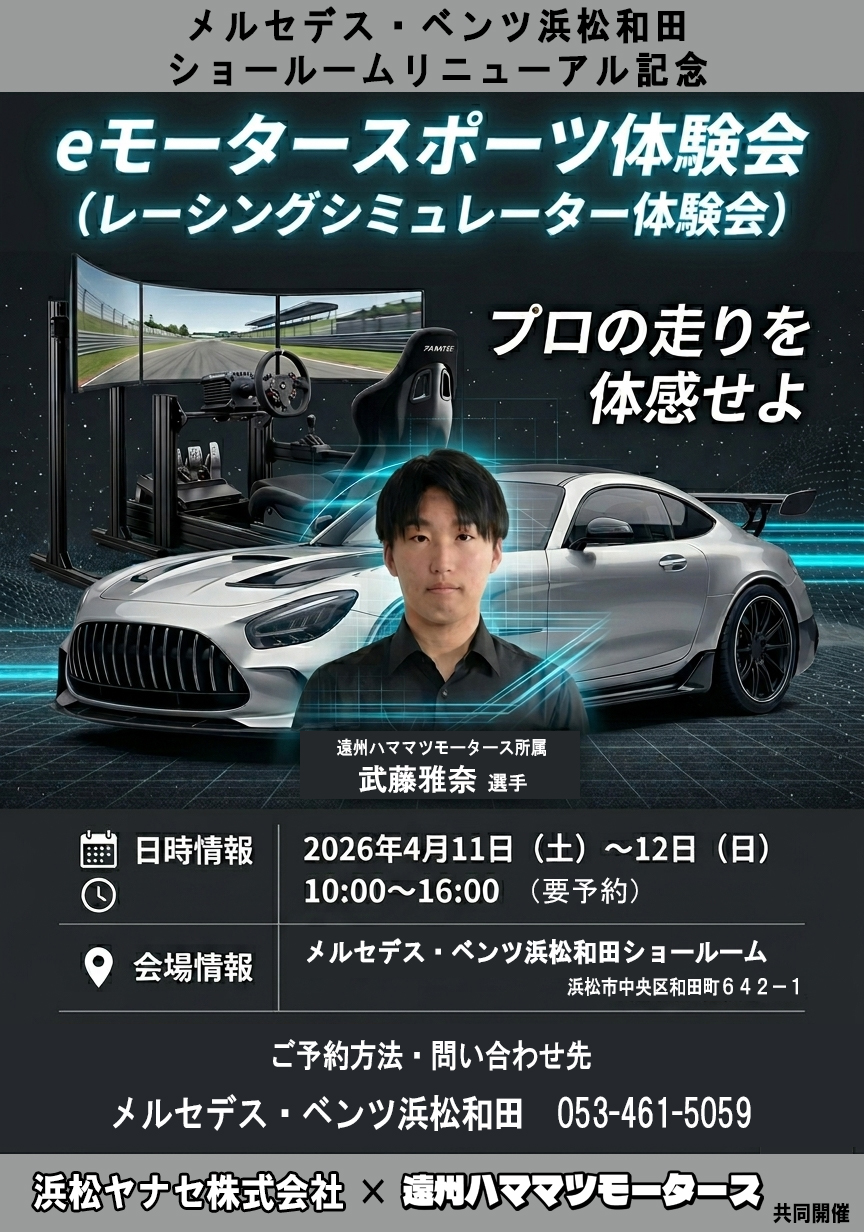【4/11(土)~12日(日)】メルセデス・ベンツ浜松和田ショールームリニューアル記念 eモータースポーツ体験会開催