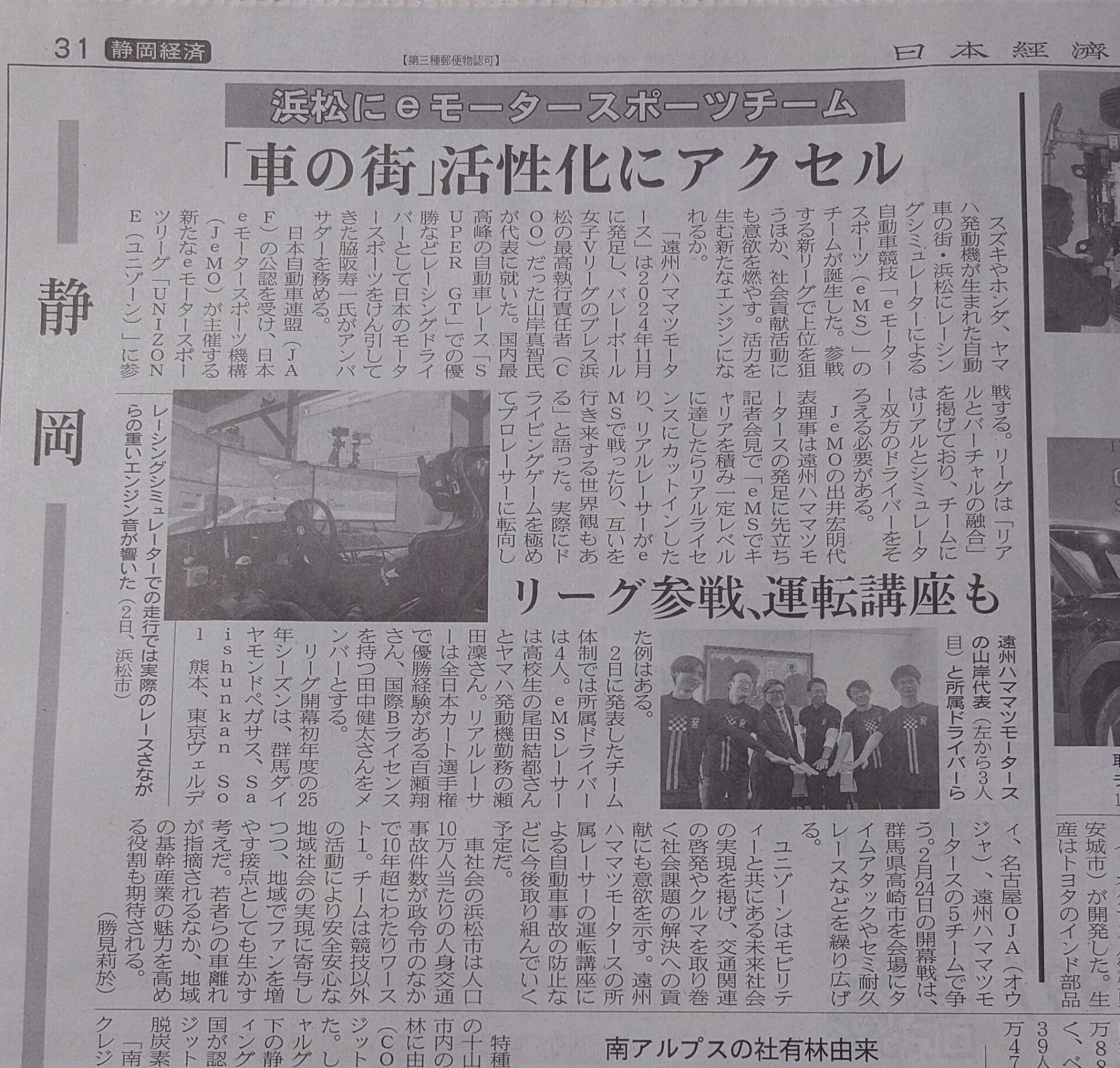 2025年2月5日付の日本経済新聞にて、遠州ハママツモータースのチーム紹介記事が掲載されました。