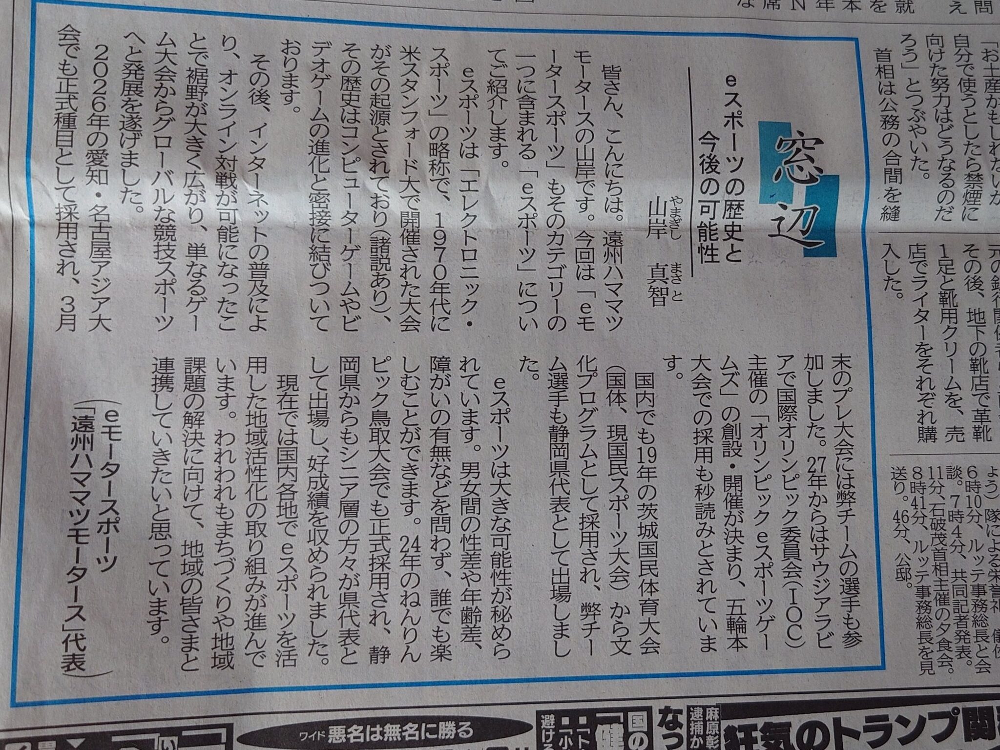 2025年4月10日、遠州ハママツモータース代表・山岸真智氏によるコラム「窓辺」第2回が静岡新聞に掲載されました。
