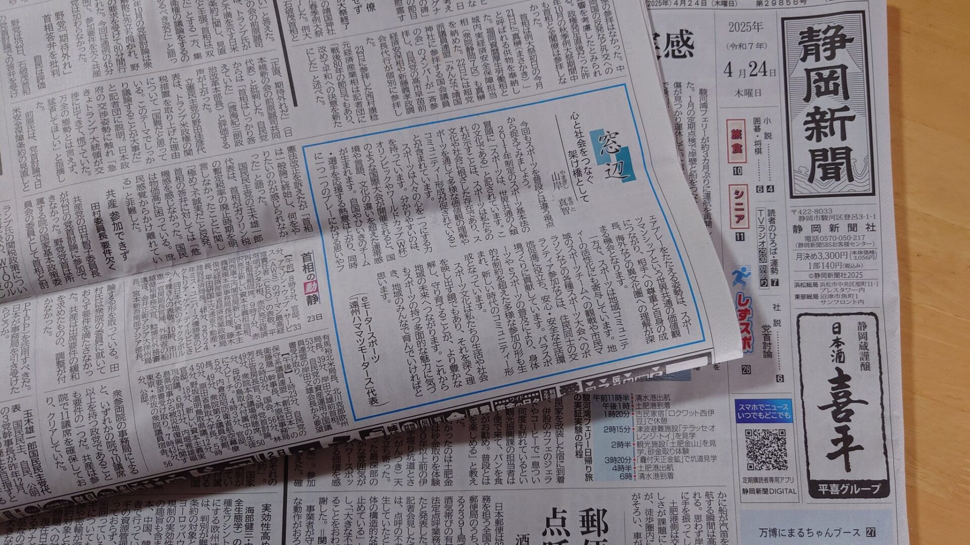 2025年4月24日、遠州ハママツモータース代表・山岸真智氏による静岡新聞「窓辺」連載の第4回が掲載されました。